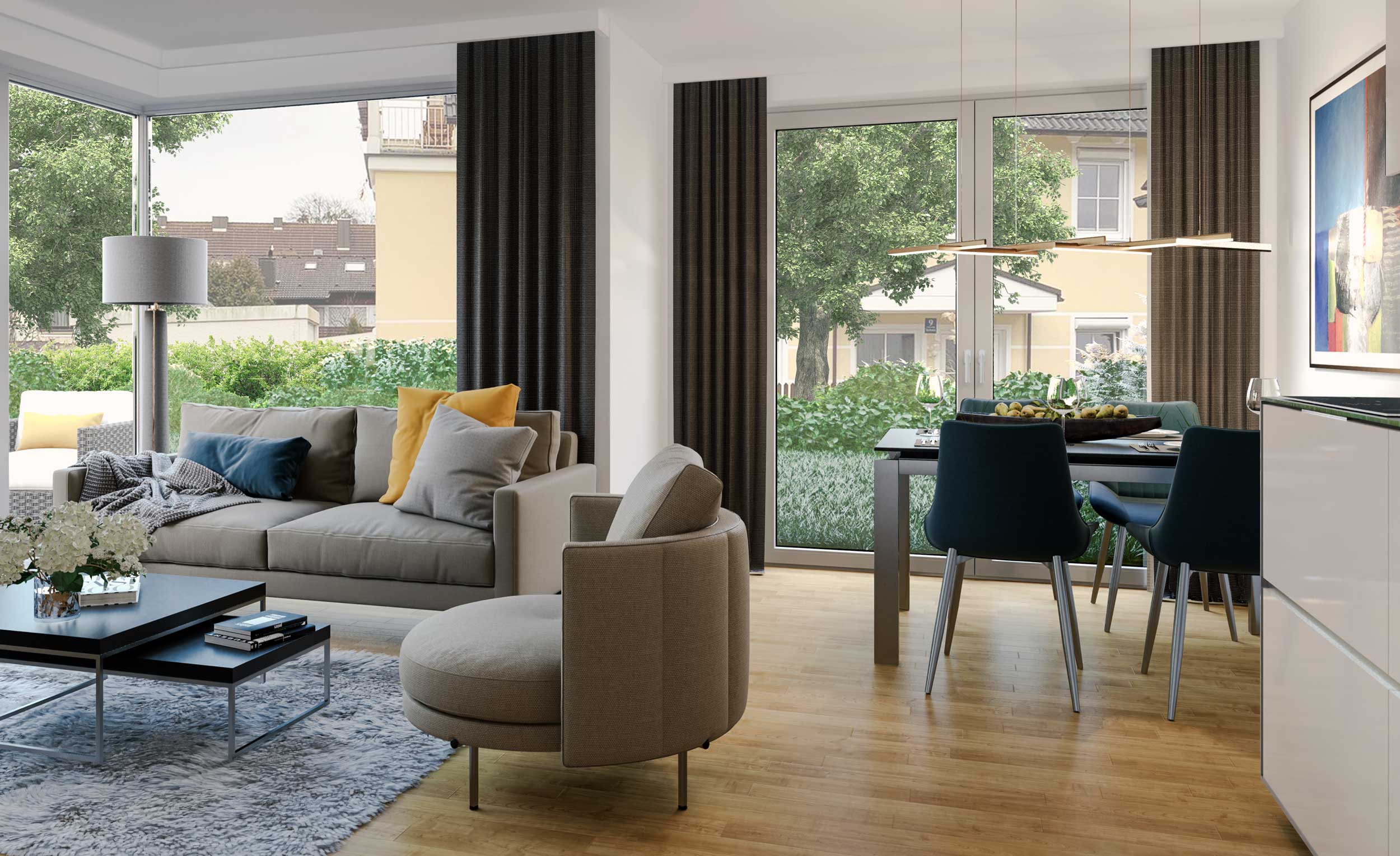 Des Weiteren umsäumen Bäume und Rasen das Haus, was die Lebensqualität enorm erhöht und gerade im Sommer zahlreiche Stunden im Freien ermöglichen, ohne das eigene Zuhause verlassen zu müssen. Sowohl Autos als auch Fahrräder haben in der Walter-Brecht-Straße 5 ihren festen und vor allem sicheren Platz: Neben einer hauseigenen Tiefgarage stehen Ihnen ausreichend Fahrradstellplätze zur Verfügung.
